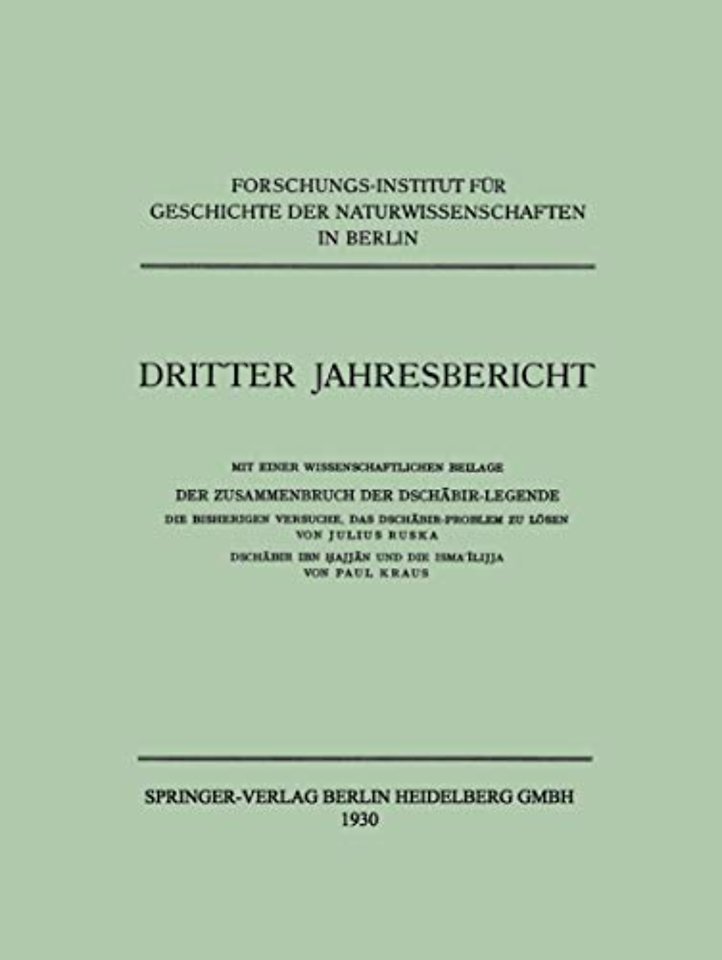 Mit einer Wissenschaftlichen Beilage. Der Zusammenbruch der Dschābir-Legende
