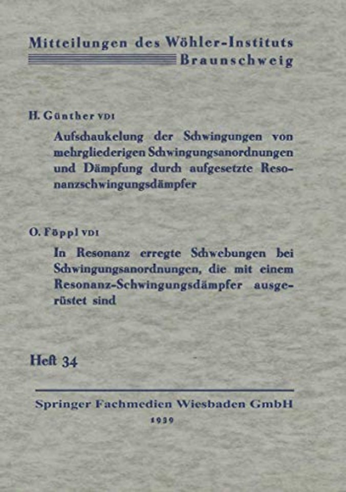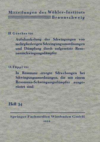 Aufschaukelung der Schwingungen von mehrgliederigen Schwingungsanordnungen und Dämpfung durch aufgesetzte Resonanzschwingungsdämpfer. In Resonanz erregte Schwebungen bei Schwingungsanordnungen, die mit einem Resonanz-Schwingungsdämpfer ausgerüstet sind