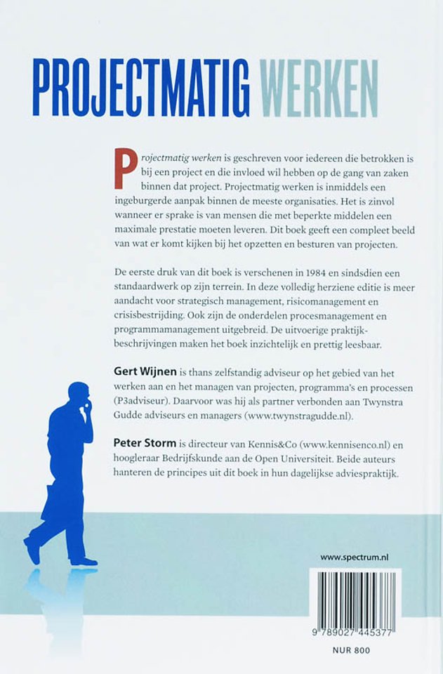 Meer over de auteurs'Projectmatig werken' is geschreven voor iedereen die betrokken is bij een project die invloed wil hebben op de gang van zaken binnen dat project. Projectmatig werken is inmiddels een ingeburgerde aanpak binnen de meeste organisaties. Het is zinvol wanneer er sprake is van mensen die met beperkte middelen een maximale prestatie moeten leveren. Dit boek geeft een compleet beeld van wat er komt kijken bij het opzetten en besturen van projecten.