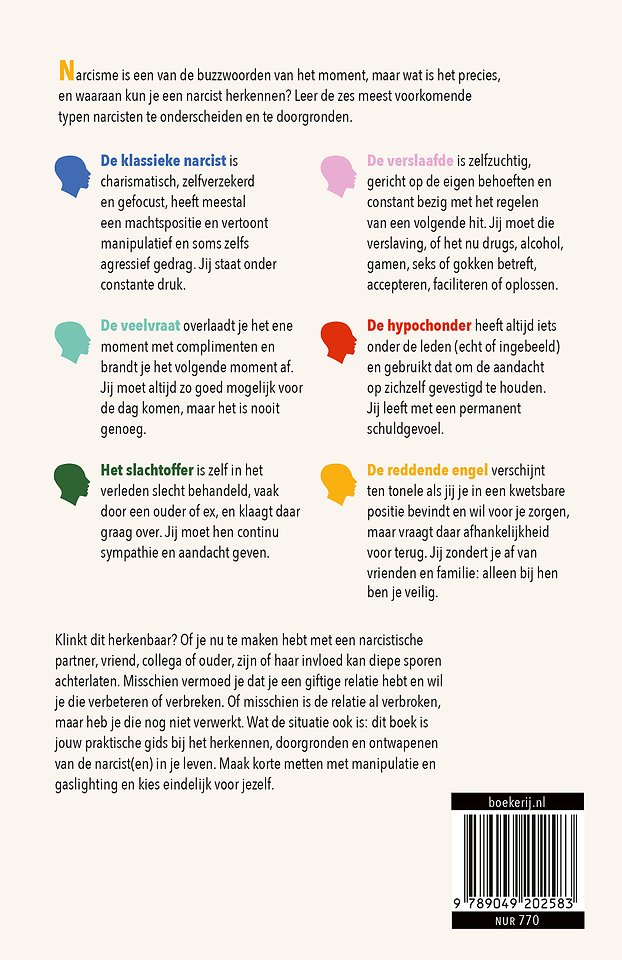 Wat de situatie ook is: dit boek is jouw praktische gids bij het herkennen, doorgronden en ontwapenen van de narcist(en) in je leven. Maak korte metten met manipulatie en gaslighting en kies eindelijk voor jezelf.