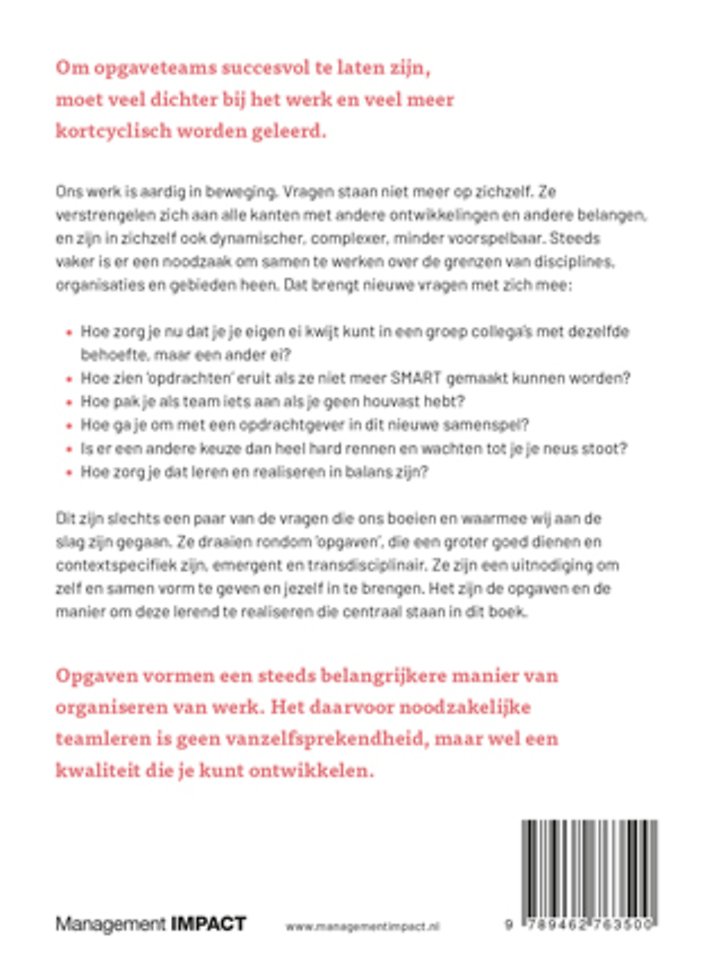 teams leren opgavegericht werken teamleren samenwerken maatschappelijke waarde professionaliteit collectieve ambitie complexiteit organisatieverandering publieke sector transdisciplinair werken professionele ontwikkeling lerende organisatie netwerken verandering reflectie goed werk emergentie betekenisvol werk vakgenootschappen opdrachtgeverschap ambiguïteit