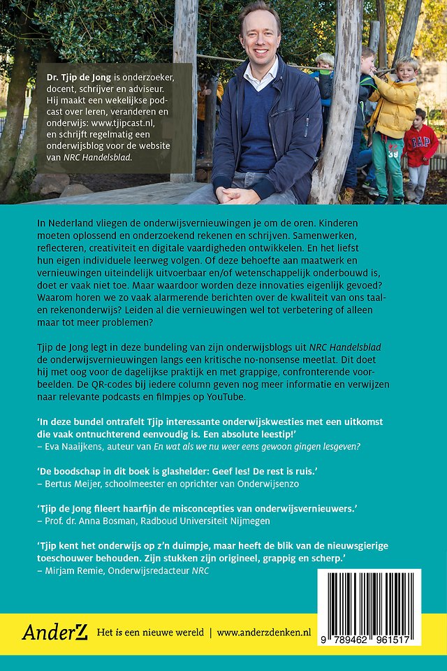 ‘Tjip de Jong fileert haarfijn de misconcepties van onderwijsvernieuwers.’ – Prof. dr. Anna Bosman, Radboud Universiteit Nijmegen
