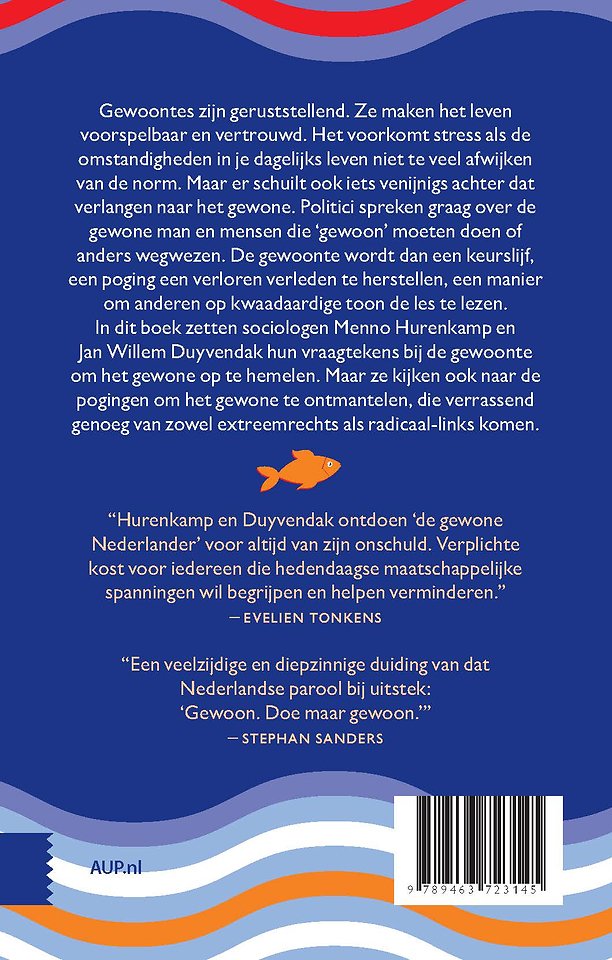 Politici spreken graag over de gewone man en mensen die ‘gewoon’ moeten doen of anders wegwezen. De gewoonte wordt dan een keurslijf, een poging een verloren verleden te herstellen, een manier om anderen op kwaadaardige toon de les te lezen. In dit boek zetten de sociologen Menno Hurenkamp en Jan Willem Duyvendak hun vraagtekens bij de gewoonte om het gewone op te hemelen. Maar ze kijken ook naar de pogingen om het gewone te ontmantelen, die verrassend genoeg van zowel extreemrechts als radicaal-links komen.