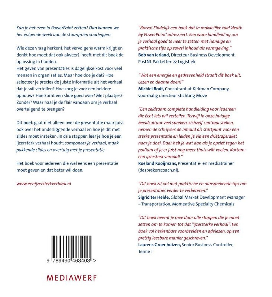 Dit boek gaat niet over de presentatie maar juist ook over het onderliggende verhaal en hoe je dit met slides moet insteken. In drie stappen leer je hoe je een ijzersterk verhaal houdt: componeer je verhaal, maak pakkende slides en overtuig met je presentatie.